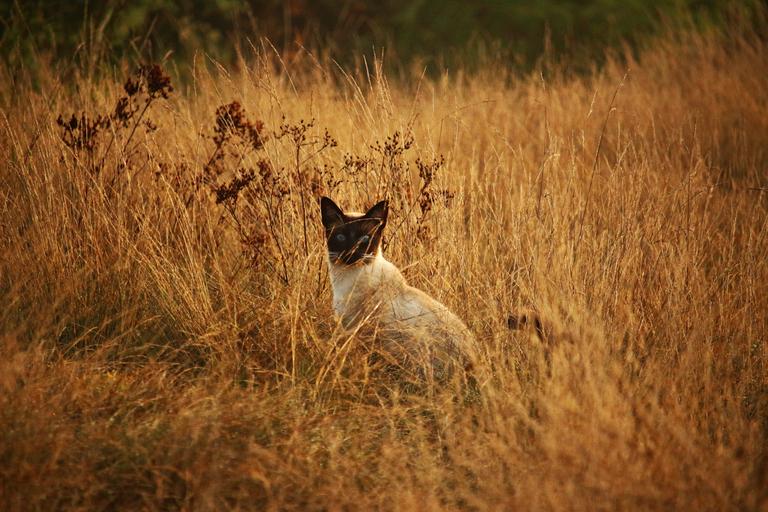 Keywords: cat kitten mieze siamese cat breed cat siamese siam grass hiding place autumn