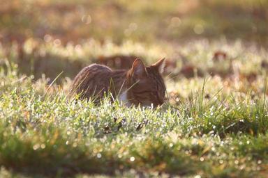 Keywords: cat kitten morgentau meadow grass fog young cat cat baby