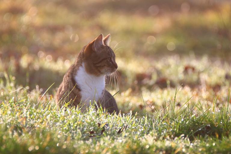 Keywords: cat kitten morgentau meadow grass fog young cat cat baby