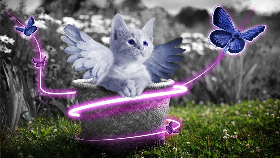 Keywords: cat kitten nature sweet cute animal world basket angel wing angel wings garden