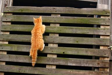 Keywords: cat kitten red mackerel tabby red cat climb wooden wall cat baby