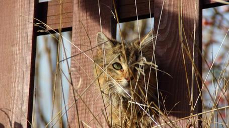 Keywords: cat kitten view animal fence eye