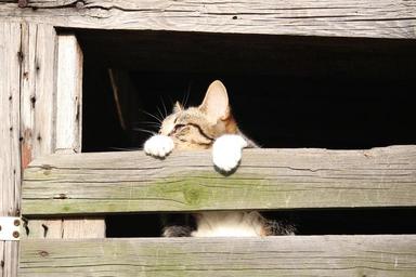 Keywords: cat kitten young cat mackerel hiding place wood domestic cat mieze