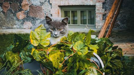 Keywords: cat leaves autumn