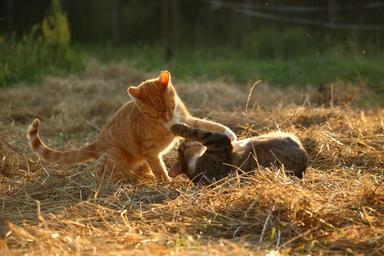 Keywords: cat mieze kitten mackerel play straw summer evening light