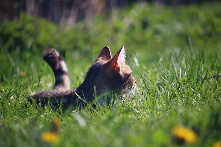 Keywords: cat mieze kitten tiger cat mackerel domestic cat cat face grass