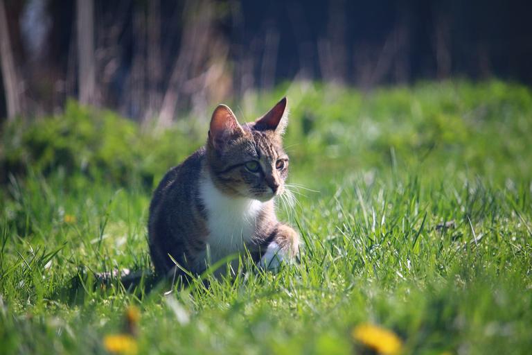 Keywords: cat mieze kitten tiger cat mackerel domestic cat cat face grass