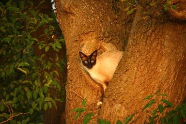 Keywords: cat mieze kitten tree branch hiding place siamese cat siamese siam
