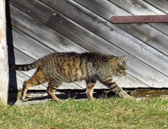 Keywords: cat out animal pets grass on the land
