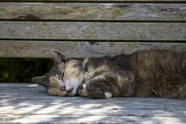 Keywords: cat pet asleep bench adorable kitty
