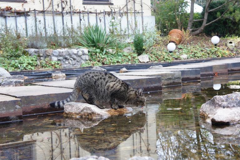 Keywords: cat pet domestic cat mieze animal fountain water animals drink waters thirst