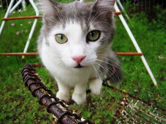 Keywords: cat pet green eyes ragdoll cat white grey watching
