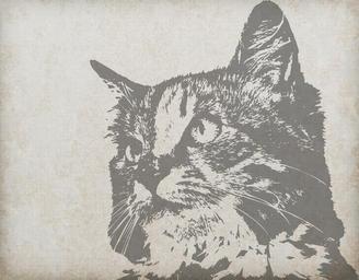 Keywords: cat portrait close-up head face beautiful vintage old retro linen texture background pet cut out rubber stamp art black pretty kitty feline