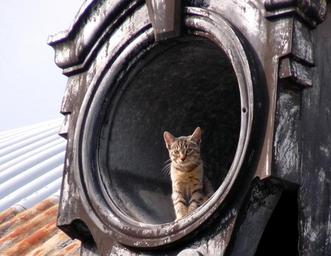 Keywords: cat roof home architecture building roofs animal sit attention mood house roof pet atmosphere fantasy
