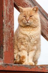 Keywords: cat sitting orange tabby orange tabby pet animal kitty outdoor feline domestic face fluffy big cat hunting curled tail tail curl domesticated magnificent healthy