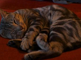 Keywords: cat sleep ball grey elongate gutter sleeps