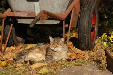 Keywords: cat sun lazy pet wheelbarrow garden