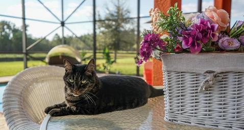 Keywords: cat tiger stripes green eyes animal nature outdoors portrait flowers pet cute feline mammal natural adorable