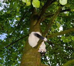 Keywords: cat tree climb young cat pet nature cat in the tree domestic cat in the free curious playful animal animal world black and white fur adidas