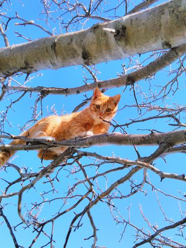 Keywords: cat tree cute cat small fur paw play animal pet kitten domestic feline kitty autumn stuck branch hunt