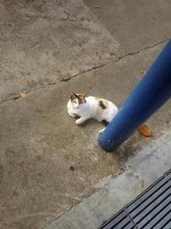 Keywords: cat under pillar feline kitten kitty pet animal domestic mammal young adorable outdoors fur