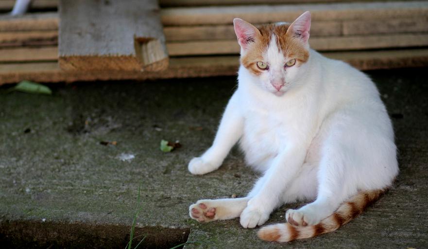 Keywords: cat white orange lazy residence