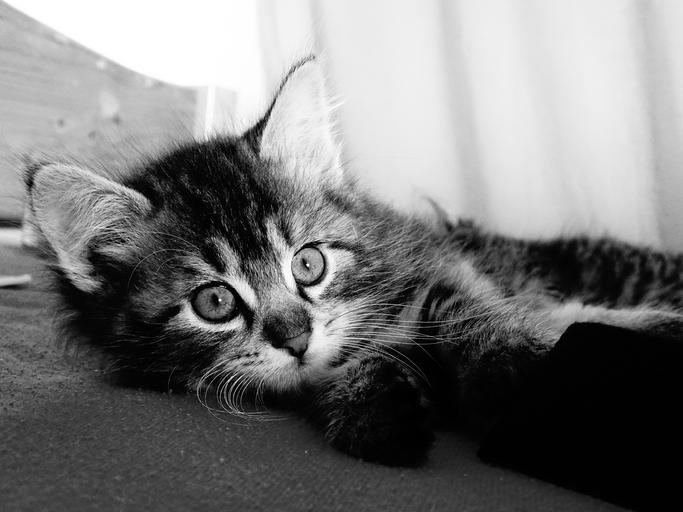 Keywords: cat young curious pet view head concerns black and white