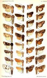 | Keywords: CATALOGUE-BM-PLATE CXXVII.jpg en PLATE CXXVII 1 Acronycta hesperida f Vol VIII p 152 Manitoba H9204 Acronicta hesperida Sm 1897 2 A dactylina m p 154 New York H9203 Acronicta dactylina Grt 1874 3 A insita f p 155 Ontario H9202 Acronicta insita Wlk 1856 4 A innotata m p 155 New York H9207 Acronicta innotata Gn 1852 5 A othello m p 156 California H9270 Acronicta othello Sm 1908 6 A longa m p 157 New York H9264 Acronicta longa Gn 1852 7 A sperata m p 157 Massachusetts H9258 Acronicta sperata Grt 1873 8 A cretata f p 160 Colorado H9205 Acronicta lepusculina Gn 1852 9 Eulonche lanceolaria f p 164 Massachusetts H9274 Acronicta lanceolaria Grt 1875 10 E insolita m p 164 Pennsylvania H9272 Acronicta oblinita J E Smith 1797 11 Merolonche lupini m p 165 California H9275 Grt 1873 12 M ursina f p 166 Colorado H9279 Sm 1898 13 Simyra henrici m p 176 Canada H9280 Grt 1873 14 S colorada m p 177 Colorado H 15 S albicosta f p 178 Madras 16 S conspersa m p 179 Bengal 17 Calophasidia dentifera f p 182 W Australia 18 Matopo nigrivittata m p 185 Mashonaland 19 M inangulata m p 186 Rhodesia 20 M actinophora m p 187 Br E Africa 21 M hemileuca f p 189 S Leone 22 Delta goniosema f p 191 Mexico 23 D ramosula m p 193 New York H9582 Nedra ramosula Gn 1852 24 D steuarti f p 193 California H9583 Nedra stewarti Grt 1875 25 D campyla m p 194 S Leone 26 D gnorima m p 195 W Turkestan 27 D detersina m p 196 W Turkestan 28 D indica m p 196 Punjab 29 D albiclava m p 198 Peru 30 Andropolia illepida m p 200 Colorado H9563 A diversilineata Grt 1877 31 A pulverulenta m p 201 Alberta H9564 A contacta Wlk 1856 a pulverulenta Sm 1891 32 A pallifera f p 202 Illinois H9565 Grt 1877 CATALOGUE OF THE NOCTUIDAE IN THE COLLECTION OF THE BRITISH MUSEUM Sir GEORGE F HAMPSON Bart 1903-1913 Acronicta dactylina JPG Acronicta hesperida JPG Acronicta innotata JPG Acronicta insita JPG Acronicta lanceolaria2 JPG Acronicta lepusculina12 JPG Acronicta longa JPG Acronicta oblinita2 JPG Acronicta othello JPG Acronicta sperata JPG Andropolia contacta JPG Andropolia diversilineata JPG Andropolia pallifera JPG Calophasidia dentifera JPG Delta albiclava JPG Delta campyla JPG Delta detersina JPG Delta gnorima JPG Delta goniosema JPG Delta indica JPG Matopo actinophora JPG Matopo hemileuca JPG Matopo inangulata JPG Matopo nigrivittata JPG Merolonche lupini JPG Merolonche ursina JPG Nedra ramosula JPG Nedra stewarti JPG Simyra albicosta JPG Simyra colorada JPG Simyra conspersa JPG Simyra henrici JPG PD-old Catalogue of Lepidoptera Phalaenae in the British Museum Vol 4 |