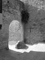 Keywords: catalonia spain archway europe steps architecture monastery stone black and white