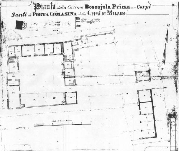 Keywords: Catasto Carolo VI - Boscajola 2.jpg it Pianta dettagliata della Cascina Boscajola dal Catasto di Carolo VI own Jpvandijk PD-Art Old maps of Milan Engraved maps Plans of palaces in Italy Cascina Boscaiola Milan