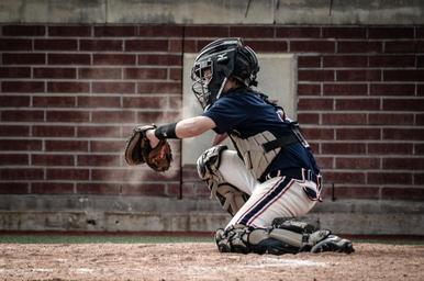 Keywords: catcher baseball youth sport ball player game athlete equipment team bat base competition play league glove field catch american helmet uniform playing cap home male fun recreation activity