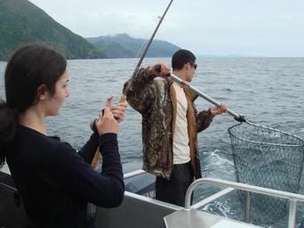 | Keywords: Catching salmon in the ocean off Raspberry Island.JPG en Two work together to bring in a salmon while ocean fishing off Raspberry Island own NancyHeise 2008-07 own work released to public domain Raspberry Island Alaska Fishermen from the United States Tourists in Alaska Angling in Alaska |