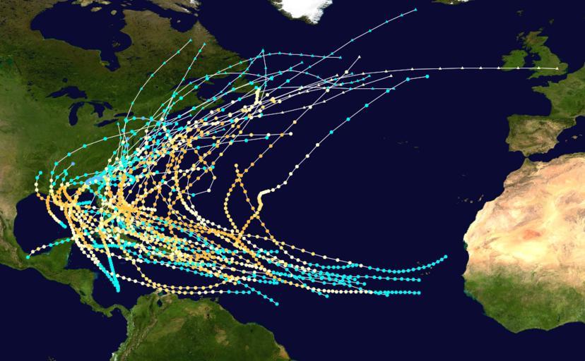 Keywords: Category 3 Atlantic hurricane tracks.png Track map of all hurricanes that have achieved Category 3 intensity in the Atlantic basin without reaching higher intensities The points show the location of the storm at 6-hour intervals The colour represents the storm's maximum sustained wind speeds as classified in the Saffir-Simpson Hurricane Scale see below and the shape of the data points represent the nature of the storm according to the legend below User Nilfanion/Tc/T Created by Titoxd using Wikipedia WikiProject Tropical cyclones/Tracks The background image is from NASA Tracking data from the National Hurricane Center <sup>http //www nhc noaa gov/pastall shtml</sup> 1887 “2009 Titoxd Tropical cyclone tracks Tropical cyclone tracks |