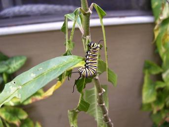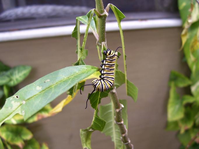 Keywords: caterpillar monarch butterfly milkweed plant outside nature scenery growth leaves greenery flora close-up outdoor green