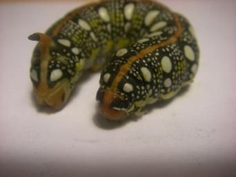 Keywords: Caterpillarblack.jpg Caterpillar of the Spurge Hawk-moth self-photographed 2007-09-24 me GFDL relicense Hyles euphorbiae caterpillar