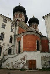 Keywords: cathedral church red brick historic black domes windows door building religion russian orthodox monastery estate