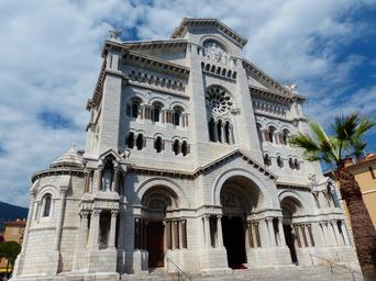 Keywords: cathedral notre dame immaculée monaco city main church principality of monaco archbishop holy sepulchre grimaldi church dom house of worship neo romani shear style neo romanesque west facade facade building architecture