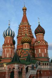 Keywords: cathedral russian orthodox architecture onion dome cupolas nine chapels combined russia blue sky view from front moscow red square kremlin area church extraordinary style decorative