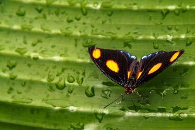 | Keywords: outdoor animal insect butterfly The Blue-frosted Banner, Blue-frosted Catone, Grecian Shoemaker, or Stoplight Catone (Catonephele numilia) is a butterfly of the Nymphalidae family found in Central and South America. There is sexual dimorphism in the adults, with the males being black with six orange dots on the dorsal surface of the wings, whereas females are black with a light yellow band across the centre of the fore wings. This butterfly usually flies along the ground and close to the ripe fruits and flowers. It can live a month. Adults feed on rotten fruits, while caterpillars feed on Alchornea species (family Euphorbiaceae). en.wikipedia.org/wiki/Catonephele_numilia otagomuseum.nz/whats-on/do/dwtf/experience/tropical-forest The Blue-frosted Banner, Blue-frosted Catone, Grecian Shoemaker, or Stoplight Catone (Catonephele numilia) is a butterfly of the Nymphalidae family found in Central and South America. There is sexual dimorphism in the adults, with the males being black with six orange dots on the dorsal surface of the wings, whereas females are black with a light yellow band across the centre of the fore wings. This butterfly usually flies along the ground and close to the ripe fruits and flowers. It can live a month. Adults feed on rotten fruits, while caterpillars feed on Alchornea species (family Euphorbiaceae). en.wikipedia.org/wiki/Catonephele_numilia otagomuseum.nz/whats-on/do/dwtf/experience/tropical-forest |