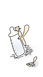 Keywords: cats milk bottle feeding milk kitten mother baby love small kitty drinking hungry child cute pet motherhood little animal sketch doodle drawing happiness