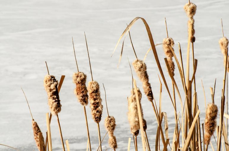 Keywords: cattails cattail reeds plants lake plants winter nature reed plant wetland swamp water natural american neutral colors ice snow frozen lake frozen