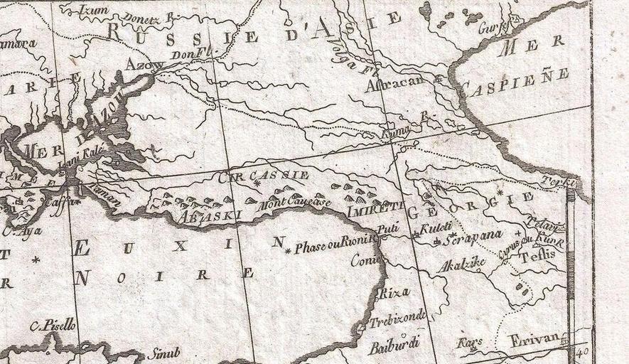 | Keywords: Caucasus. 1780 Raynal and Bonne Map of Turkey in Europe and Asia - Geographicus - TurquieEurope-bonne-1780.jpg 1780_Raynal_and_Bonne_Map_of_Turkey_in_Europe_and_Asia_-_Geographicus_-_TurquieEurope-bonne-1780 jpg Creator Rigobert Bonne en The caucasus Part of A fine example of Rigobert Bonne and Guilleme Raynal ™s 1780 map of Turkey in Europe and Asia This map of the Ottoman Empire includes the areas stretching from Italy Hungary and modern day Austria in the west to the Caspian Caspiene Sea and Iran in the east to the Persian Gulf and Egypt's Nile Delta in the south Includes modern day Greece and Turkey in their entirety including the area formerly known as Kurdistan as well as Georgia Georgie Armenia Jordan Israel Palestine Iran Iraq and Syria Denotes Jerusalem Baghdad Bagdad Constantinople the capital of the Roman Empire and other important cities Highly detailed with rivers lakes and mountain ranges labeled Includes 5 scales of measurement in the bottom left quadrant Atlas de Toutes les Parties Connues du Globe Terrestre Dressé pour l'Histoire Philosophique et Politique des Établissemens et du Commerce des Européens dans les Deux Indes 1780 undated Original map Size in 13 9 object history credit line accession number TurquieEurope-bonne-1780 1780_Raynal_and_Bonne_Map_of_Turkey_in_Europe_and_Asia_-_Geographicus_-_TurquieEurope-bonne-1780 jpg 50 Raynal G <i>Atlas de Toutes les Parties Connues du Globe Terrestre Dressé pour l'Histoire Philosophique et Politique des Établissemens et du Commerce des Européens dans les Deux Indes</i> 1780 Geographicus-source geagea 1780_Raynal_and_Bonne_Map_of_Turkey_in_Europe_and_Asia_-_Geographicus_-_TurquieEurope-bonne-1780 jpg Maps by Rigobert Bonne 1780 maps Maps in French 18th-century maps of Georgia Old maps of Armenia 18th-century maps of Azerbaijan Old maps of the Caucasus Maps of Circassia PD-Art-100 Original upload log This image is a derivative work of the following images File 1780_Raynal_and_Bonne_Map_of_Turkey_in_Europe_and_Asia_-_Geographicus_-_TurquieEurope-bonne-1780 jpg licensed with PD-Art 2011-03-24T11 11 39Z BotMultichillT 2500x1713 1341523 Bytes <nowiki> subst User Multichill/Geographicus http //www geographicus com/P/AntiqueMap/TurquieEurope-bonne-1780 1780 Raynal and Bonne Map of Turkey in Europe and Asia La Turquie D'Europe Et Celle D'Asie </nowiki> Uploaded with derivativeFX ImageNote 1 599 346 112 34 1091 631 2 Imireti ImageNoteEnd 1 ImageNote 2 299 352 125 41 1091 631 2 Abaski ImageNoteEnd 2 ImageNote 3 370 285 184 37 1091 631 2 Circassie ImageNoteEnd 3 ImageNote 4 653 382 45 26 1091 631 2 Puti ImageNoteEnd 4 ImageNote 5 754 433 93 44 1091 631 2 Akalzike ImageNoteEnd 5 ImageNote 6 893 428 75 35 1091 631 2 Teflis Tbilisi ImageNoteEnd 6 |