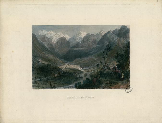 | Keywords: Cauterets, in the Pyrenees - Fonds Ancely - B315556101 A ALLOM 2 008.jpg Réunion de 23 gravures en couleurs concernant les Pyrénées Toulouse et Bordeaux Extrait des trois volumes de La France au XIXe siècle de Thomas Allom qui contient 19 planches concernant les Pyrénées pl 45 49 55 62 68 75 78 80 81 83 Tome II et 5 7 16 37 42 45 65 83 85 Tome III Dans chaque tome le faux titre est gravé sur acier et rédigé en anglais Les planches pyrénéennes ont souvent été réunies en albums sans texte Cet exemplaire réunit 23 gravures sur acier en couleurs concernant les Pyrénées Toulouse et Bordeaux - Planches séparées Gravures exécutées par A Willmore C T Dixon E Radclyffe J Kernot W Floyd R Wallis S Fischer J C Bentley H Adlard Augs Fox J Templeton S Bradshaw J Tingle T Turnbull J Carter d'après les dessins de T Allom Ancely René 1876 - 1966 Possesseur eng fre ger public domain domaine public B315556101_A_ALLOM_2_008 jpg image/jpeg 1 f de pl gr en coul ; 33 cm Delille Charles-Jean Collaborateur Fischer S Graveur http //numerique bibliotheque toulouse fr/collect/general/index/assoc//ark /74899/B315556101_A_ALLOM_2_008 dir/B315556101_A_ALLOM_2_008 jpg Bibliothèque municipale de Toulouse A-ALLOM 2-8 Creator Thomas Allom http //catalogues toulouse fr/web2/tramp2 exe/do_keyword_search/log_in setting_key BMT1 servers 1home query p000064 City of Auch Pyrenees La ville d'Auch Pyrénées Die Stadt Auch Pyreneens Château and bridge of Pau Castle of Pau the birth-place of Henri Quatre Château de Pau lieu de naissance de Henri IV Schloss Pau geburtsort Heinrichs IV Pic du Midi d'Ossau Der Pic du Midi d'Ossau Eaux-Bonnes in the Pyrenees Eaux-Bonnes dans les Pyrénées Eaux-bonnes in den Pyreneen The Col de Tortes - Hunting the Izard Le col de Tortes - Chasse de l'Izard Der Col de Tortes - Die jagd des Izard Val d'Azun High Pyrenees Pont d'Espagne High Pyrenees Pont d'Espagne Hautes-Pyrénées Spanische Brücke Hohe Pyreneen Lac de Gaube Pyrennees Lac de Gaube Pyrénées Der see zu Gaube in den Pyreneen Church of the Knights Templars at Luz Eglise des Templiers à Luz Kirche der Malteser zu Luz Double bridge of Scia Valley of the Gave de Gavarnie Double pont de Scia Vallée du gave de Gavarnie Doppel brücke bei Scia Gave-Thal von Gavarnie The Circle of Gavarnie Pyrenees A Cabaret in the Pyrenees rainy day Cabaret dans les Pyrénées Un jour pluvieux Wirthshaus in den Pyreneen an einem regentage Bagnères de Bigorre - Pyrenees Bagnères de Bigorre - Pyrénées Bagnères de Bigorre in den Pyreneen Bagnères de Luchon Pyrénées Bagnères de Luchon Pyreneen Castle and Valley d'Oo - Pyrenees Château et Vallée d'Oo-Pyrénées Schloss und Thal von Pyreneen Lake d'Oo - High Pyrenees Lac d'Oo Hautes-Pyrénées Der See d'Oo Obere Pyreneen The Bridge of Toulouse Pont de Toulouse Die Brücke zu Toulouse Church of Saint Sernin Toulouse Eglise de Saint-Sernin à Toulouse Die Kirche des Heil Sernin in Toulouse Church of St Taur Toulouse Eglise de Saint-Taur Toulouse St Taur Kirche Toulouse The Capitol of Toulouse Capitole de Toulouse Capitol zu Toulouse Quay of Louis XVIII Bordeaux Quai de Louis XVIII Bordeaux Der Quai Ludwigs XVIII Bordeaux vignette http //numerique bibliotheque toulouse fr/collect/general/index/assoc//ark /74899/B315556101_A_ALLOM_2_008 dir/B315556101_A_ALLOM_2_008_thumb jpeg by 1840 Cauterets in the Pyrenees B315556101_A_ALLOM_2_008 woodblock print - engraving - colors Thomas Allom Bridges in France Cauterets Mountains of France in art |