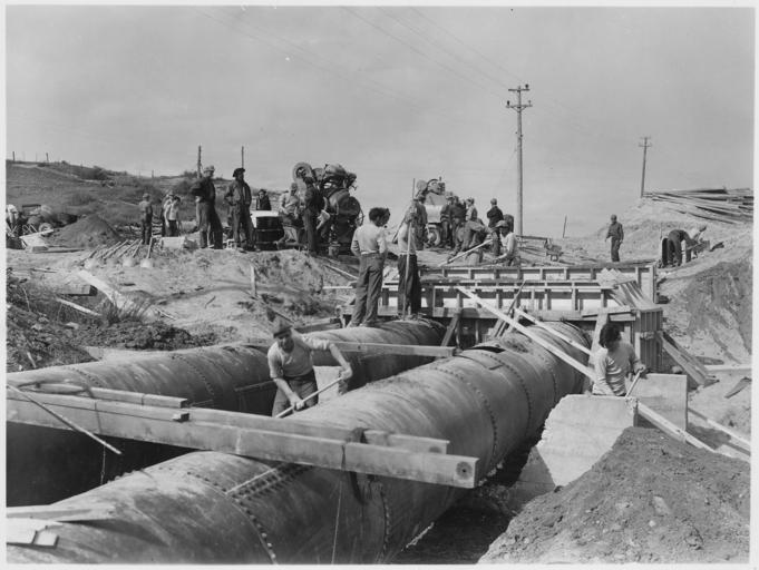 | Keywords: CCC Camp BR-24 Boise Project, Marsing, Idaho, Photo of crew placing concrete collar connecting old steel pipe with... - NARA - 293517.jpg Scope and content General notes 293517 Local identifier Department of the Interior Bureau of Reclamation Civilian Conservation Corps Division 1937 - 1942 NARA's Rocky Mountain Region Denver NRGA Building 48 Denver Federal Center West 6th Avenue and Kipling Street Denver CO 80225-0307 1941-03-14 Record group Record Group 115 Records of the Bureau of Reclamation 1889 - 2008 Record group ARC 444 Civilian Conservation Corps Photographs and Related Correspondence compiled 1939 - 1941 Series ARC 293494 File unit File unit ARC Variant control numbers NAIL Control Number NRG-115-CCCPHOWDC31-BR243011695 Other versions <gallery> File CCC_Camp_BR-24_Boise_Project _Marsing _Idaho _Photo_of_crew_placing_concrete_collar_connecting_old_steel_pipe_with _-_NARA_-_293517 tif tif File CCC_Camp_BR-24_Boise_Project _Marsing _Idaho _Photo_of_crew_placing_concrete_collar_connecting_old_steel_pipe_with _-_NARA_-_293517 jpg jpg </gallery> NARA-cooperation PD-USGov Civilian Conservation Corps camps Water pipelines in the United States |