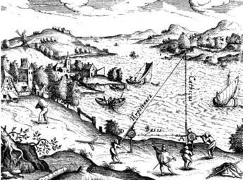 | Keywords: CD006-Triangulation 16th century.png Illustration de la mesure de la largeur d'une rivière par triangulation tirée d'un traité de Hulsius datant du 16e siècle Measuring the width of a river by triangulation Hulsius 16th century PD-old L'ancienneté de l'ouvrage implique que cette illustration se trouve dans le domaine public Carlo denis Carlo denis 21 juillet 2006 à 19 41 CEST History of physics Triangulation Surveying in art | ||||