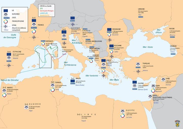 | Keywords: Cecmedzmm.jpg png fr Zone maritime Méditerranée sous commandement de CECMED avec les accords et associations de la France avec les pays riverains ainsi que le nombre de ressortissants français dans ces pays en Mediterranean Sea Area under the command of CECMED with the agreements and associations of France with the riparian countries and the number of French nationals in these countries Marine Nationale - CECMED commandant en chef de la marine en Méditerranée http //web mac com/com med/iWeb/mediterranee/CECMED html L'image a été réalisé par notre service photo FOSIT Toulon elle est libre de droit Fosit Toulon 2007 Military units and formations of France |
