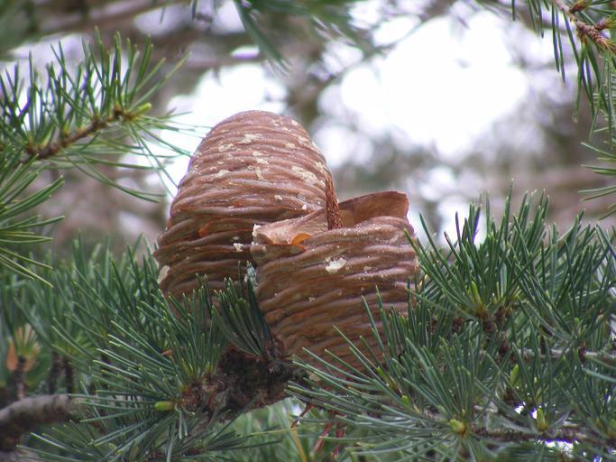 Keywords: Cedar cones.jpg en Two cedar cones -- one intact the other one half intact own Ebustad 2009-04-14 47 719351 -122 167851 region US_heading NW Cedrus deodara cultivated Cedrus cones