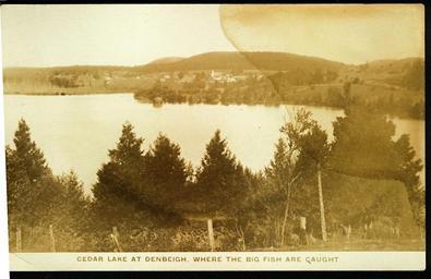| Keywords: cedar lake cedarlake denbigh lake denbighlake denbigh denbeigh addington highlands addingtonhighlands lennox & addington lennoxaddington 41. 41 photo border serene outdoor A photo of Cedar Lake (now Denbigh Lake) near the village of Denbigh - in the background. This photo was taken near the present day Highway #41. Denbigh is the northern most village in the Township of Addington Highlands, County of Lennox & Addington. Notice the change in spelling of Denbeigh to Denbigh. Unknown date of photograph. A photo of Cedar Lake (now Denbigh Lake) near the village of Denbigh - in the background. This photo was taken near the present day Highway #41. Denbigh is the northern most village in the Township of Addington Highlands, County of Lennox & Addington. Notice the change in spelling of Denbeigh to Denbigh. Unknown date of photograph. |