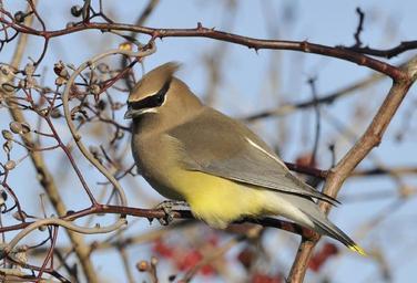Keywords: cedar waxwing perched wildlife nature portrait bird tree wild outdoors looking