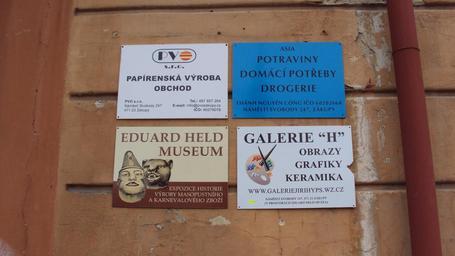Keywords: Cedule na Heldovce.jpg cs Venkovní tabule na objektu own Zákupák 2010-01-25 Eduard Held Muzeum